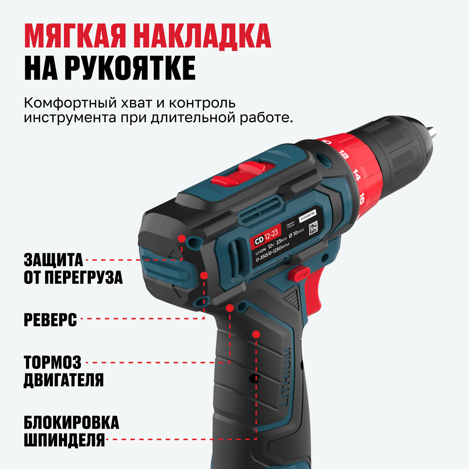 - Крутящий момент 23 Нм — справляется с крепежом в твердых материалах.
