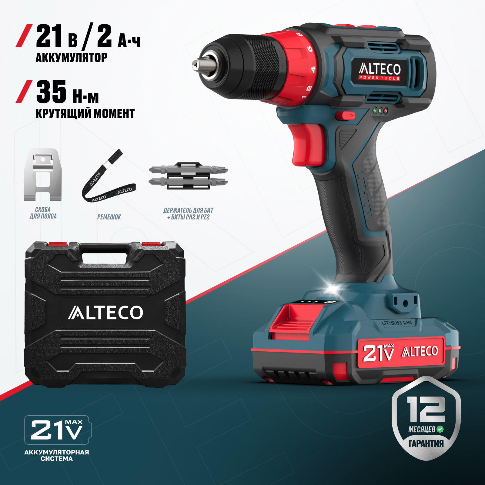 - Часть единой аккумуляторной системы ALTECO 21Vmax — один аккумулятор подходит для всех инструментов этой серии, обеспечивая удобство, экономию и гибкость в работе.