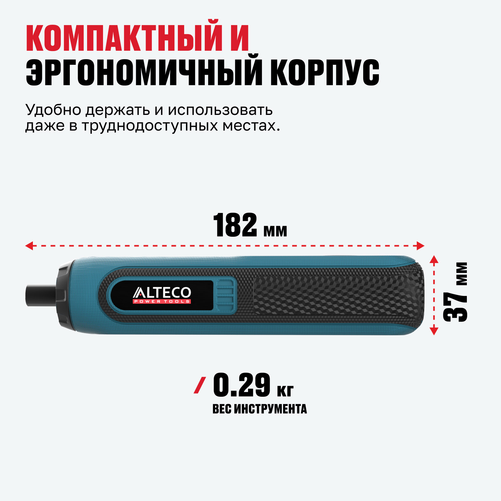 - Компактный и эргономичный корпус — удобно держать и использовать даже в труднодоступных местах.