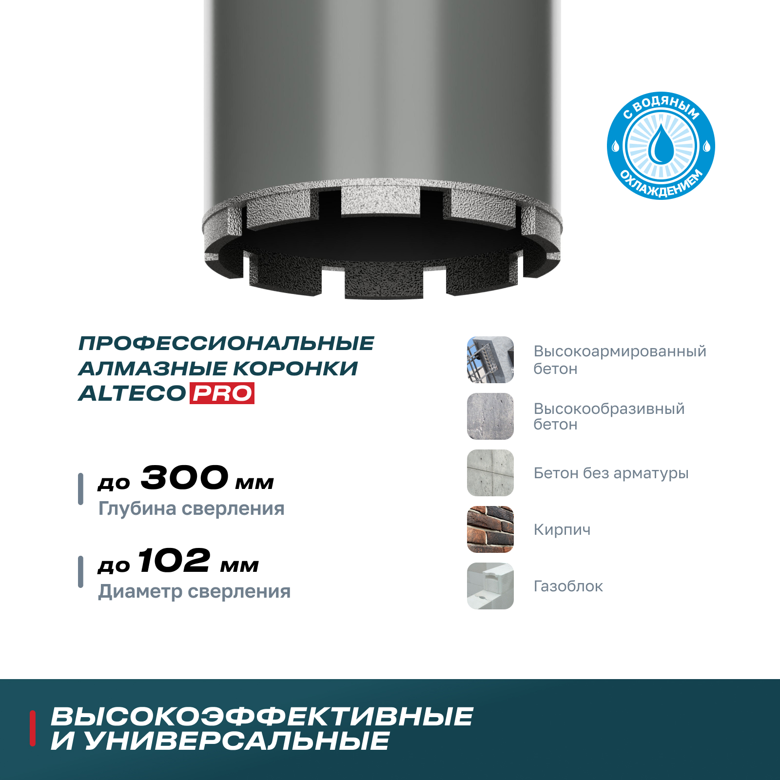⚠️ Важно: Данная коронка не предназначена для сухого бурения. Используйте охлаждение водой для продления срока службы инструмента и коронки. Не предназначена для работы с инструментом с микроударом.