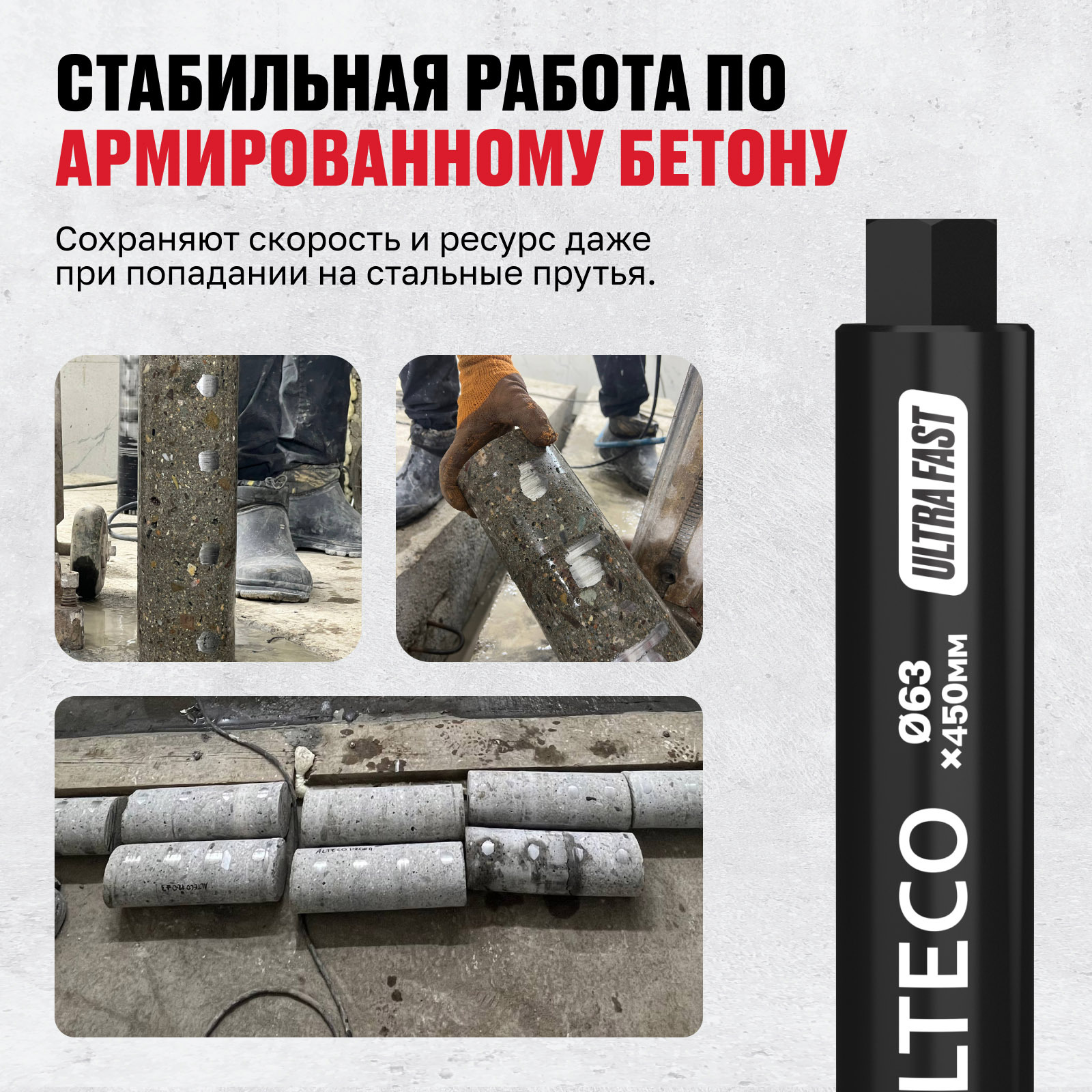 Высокоскоростные для интенсивного бурения. Бурит высокоармированный бетон в 2 раза быстрее, чем ALTECO Pro.