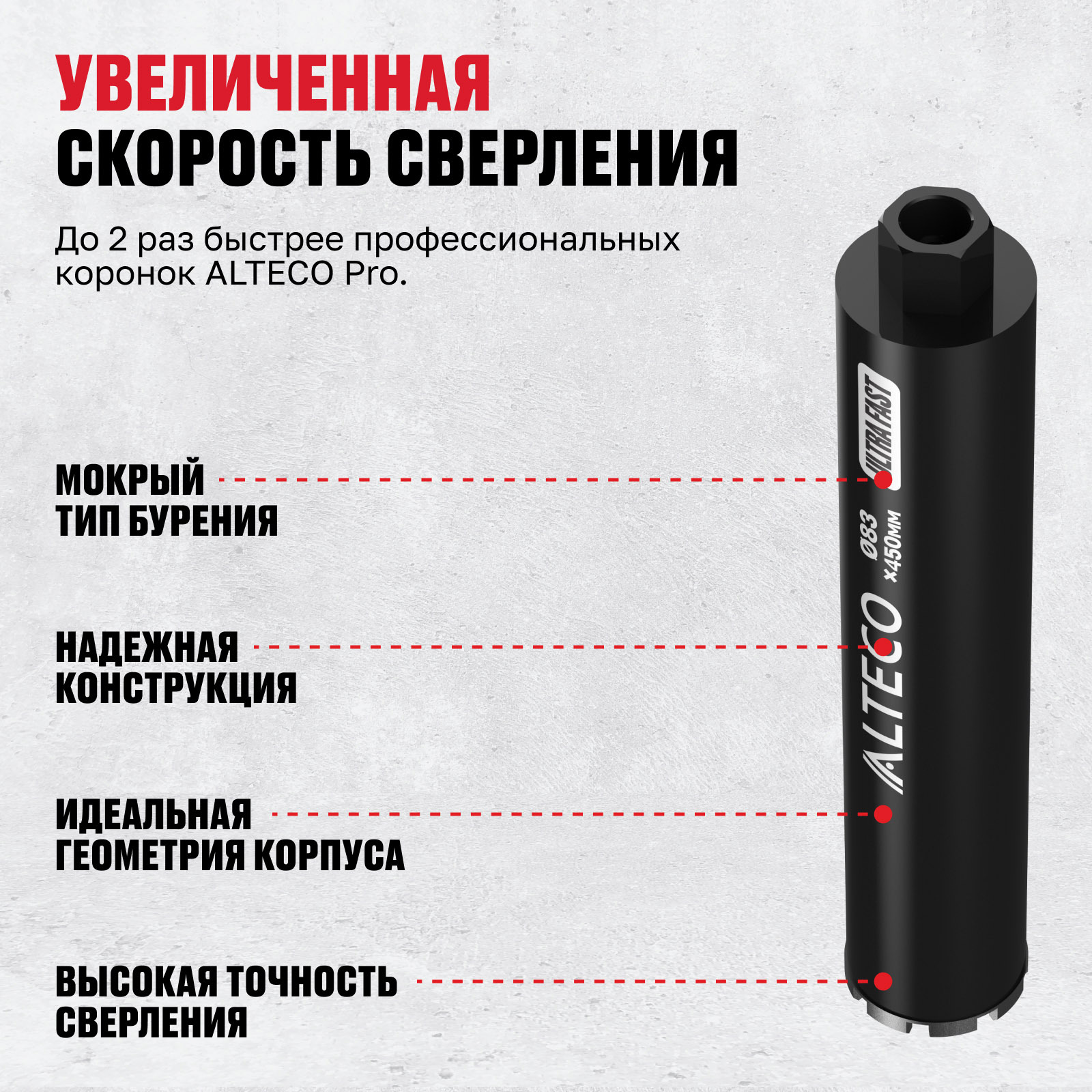 Высокоскоростные для интенсивного бурения. Бурит высокоармированный бетон в 2 раза быстрее, чем ALTECO Pro.