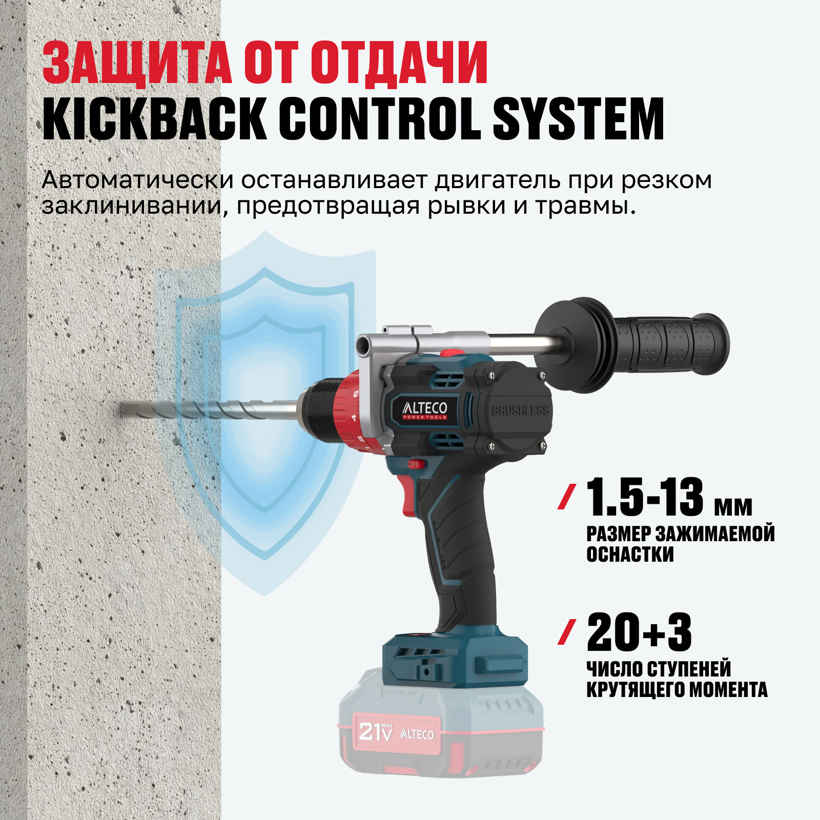 - Часть единой аккумуляторной системы ALTECO 21Vmax — один аккумулятор подходит для всех инструментов этой серии, обеспечивая удобство, экономию и гибкость в работе.