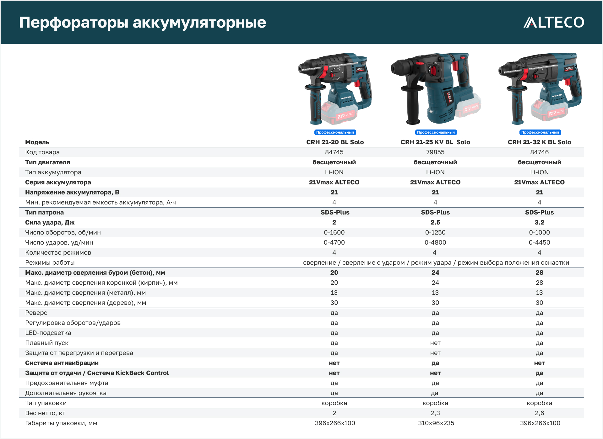 - Часть единой аккумуляторной системы ALTECO 21Vmax — один аккумулятор подходит для всех инструментов этой серии, обеспечивая удобство, экономию и гибкость в работе.