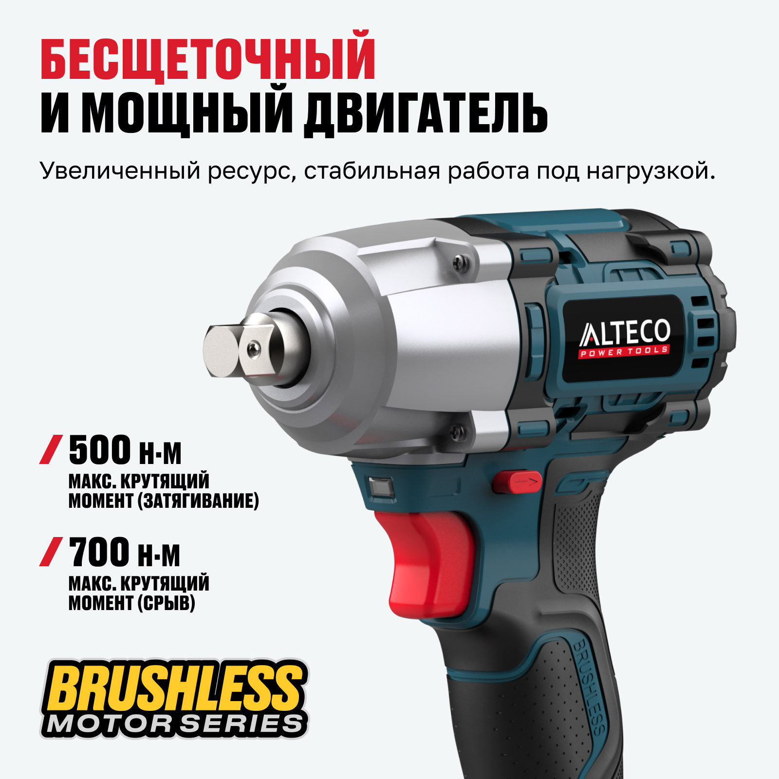 Компактный и легкий с мощным бесщеточным двигателем, с максимальным крутящим моментом 500 Н·м
