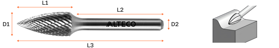Борфрезы имеют двойную насечку, обеспечивающую эффективное удаление материала и превосходное качество обработки поверхности.