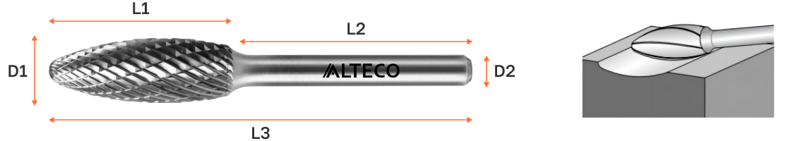 Борфрезы имеют двойную насечку, обеспечивающую эффективное удаление материала и превосходное качество обработки поверхности.