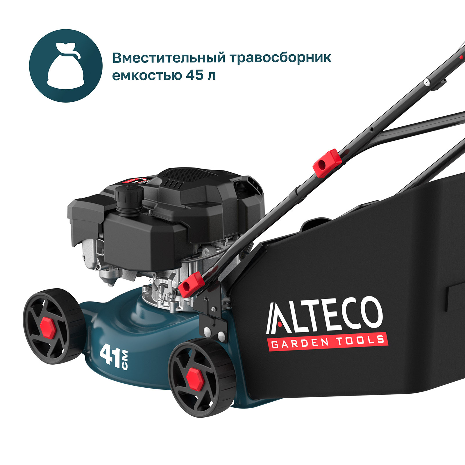 - Ширина скоса 41 см – оптимальна для точного и аккуратного кошения на небольших газонах