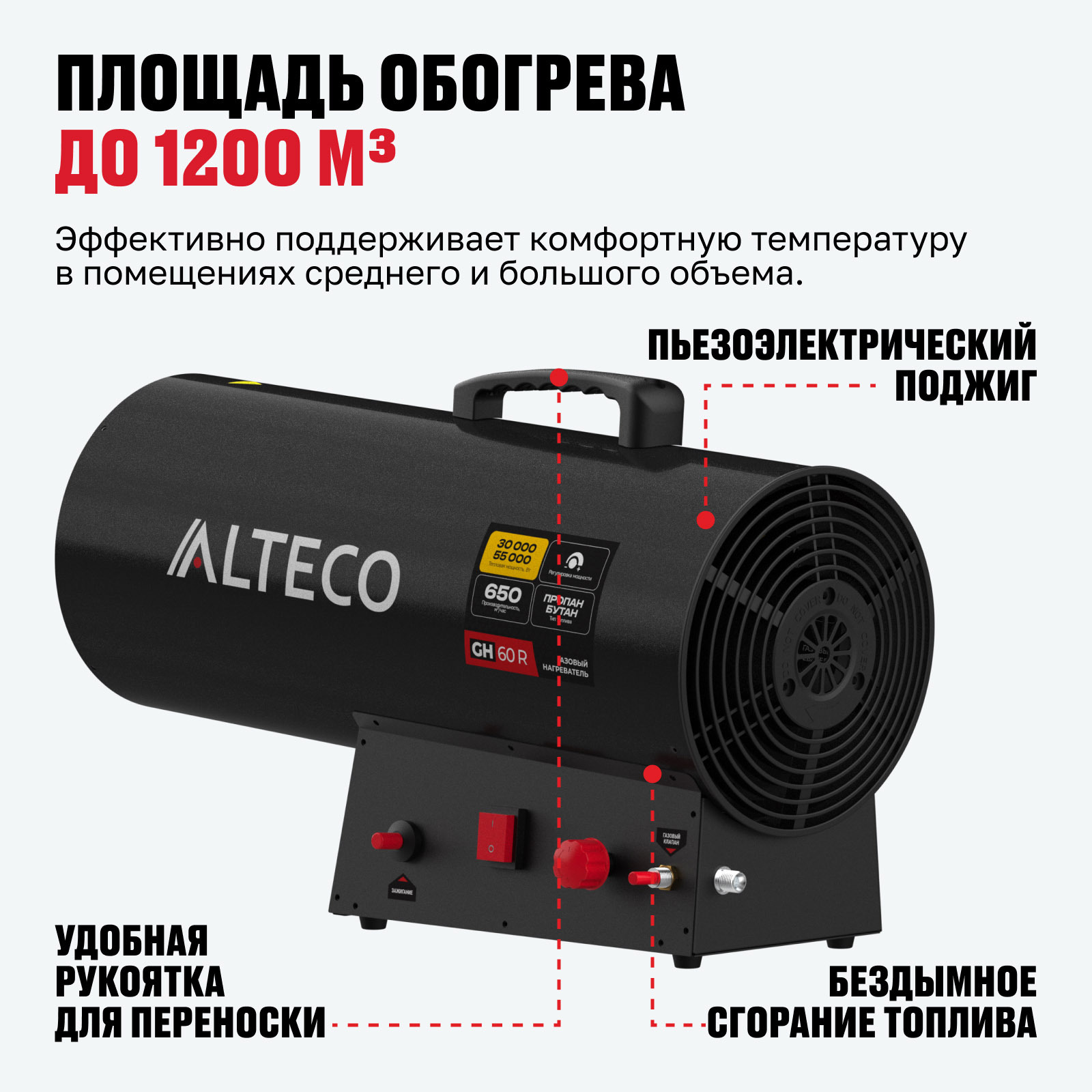 - Площадь обогрева до 1200 м³ — эффективно поддерживает комфортную температуру в помещениях среднего и большого объема.