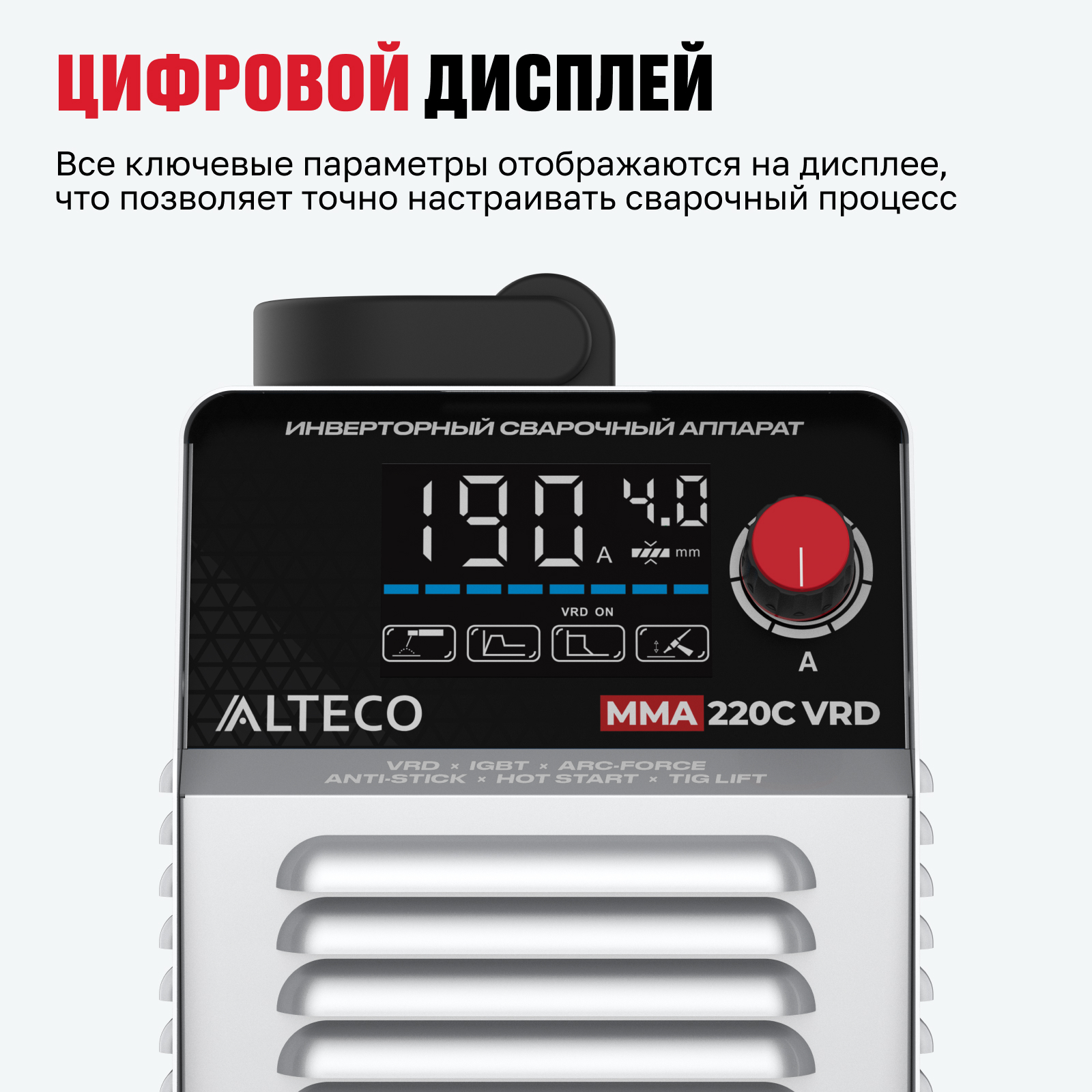 - Функция VRD – снижает напряжение холостого хода для повышения безопасности, уменьшая риск удара током во время простоя