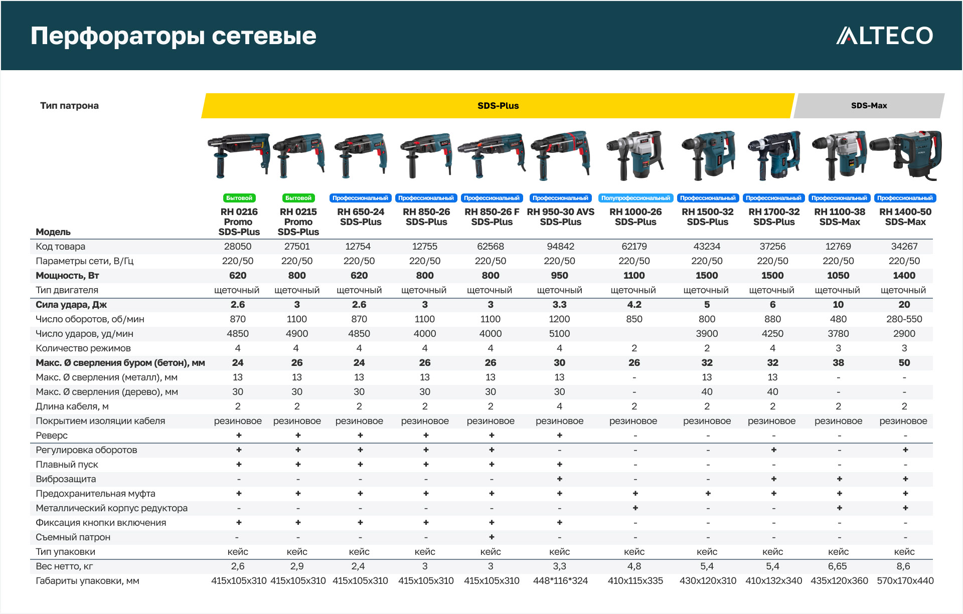 Преимущества ALTECO RH 950-30 AVS SDS-Plus