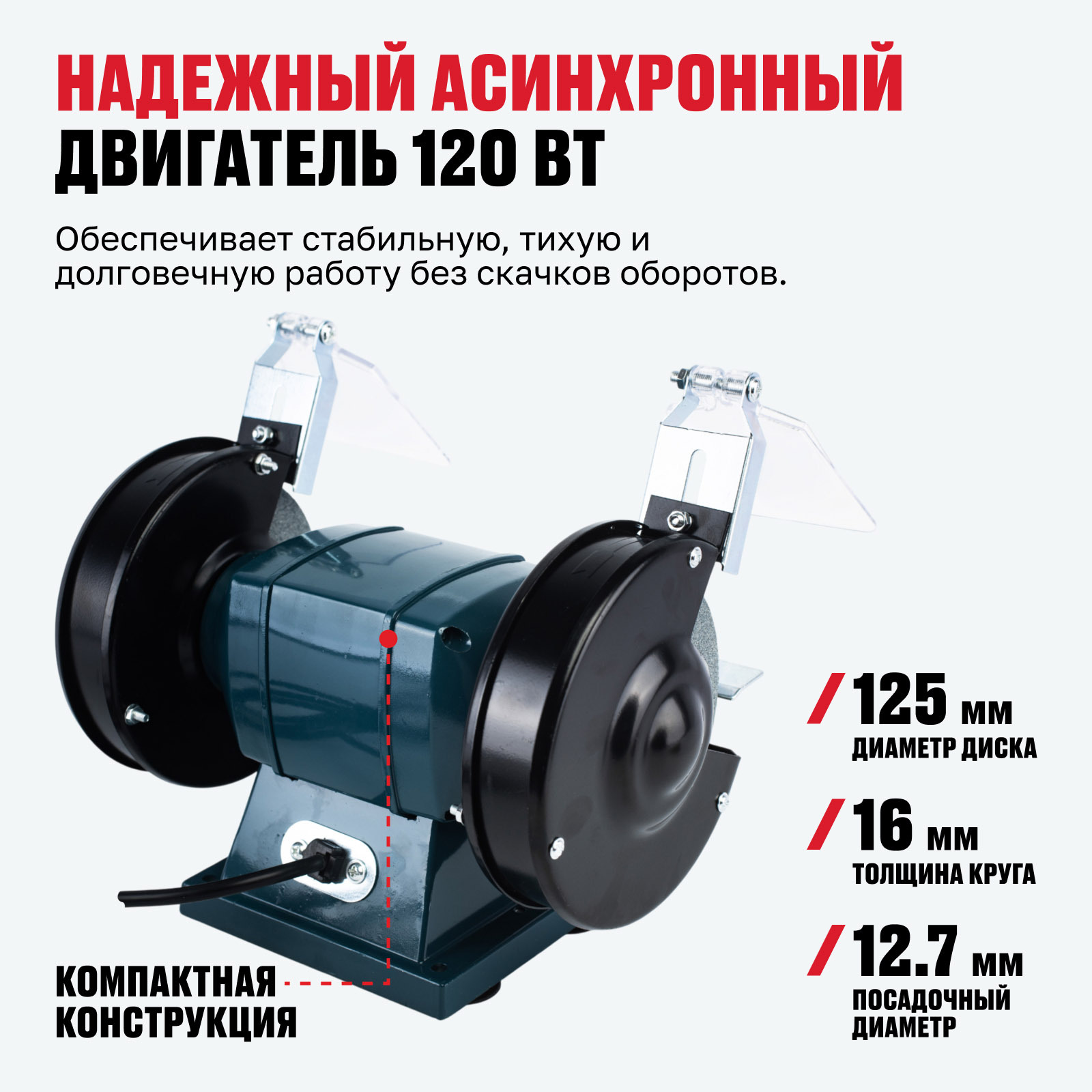 - Надежный асинхронный двигатель 120 Вт — обеспечивает стабильную, тихую и долговечную работу без скачков оборотов.