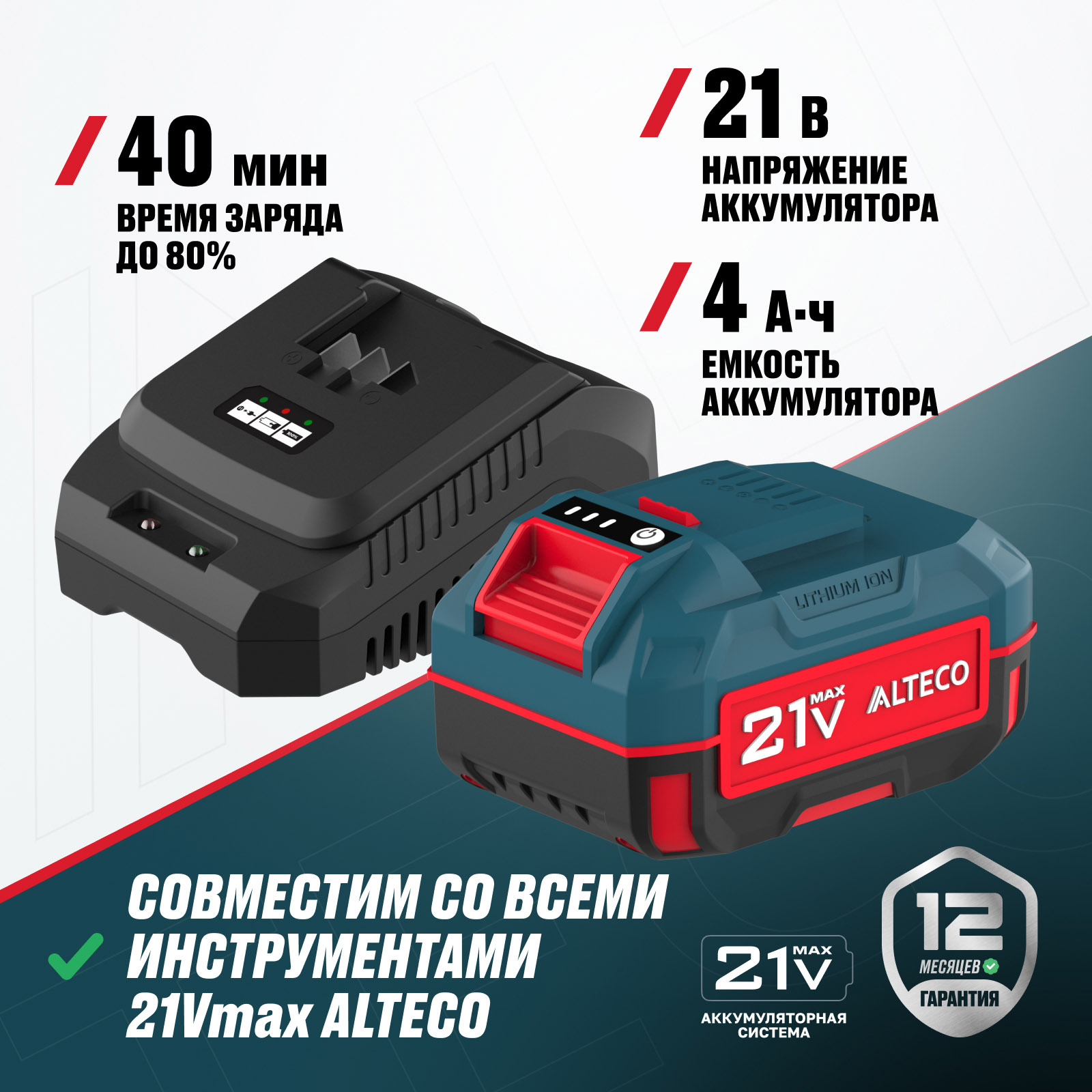 - Аккумулятор ALTECO BCD 21-40 Li (21 В / 4.0 А·ч) × 1 шт