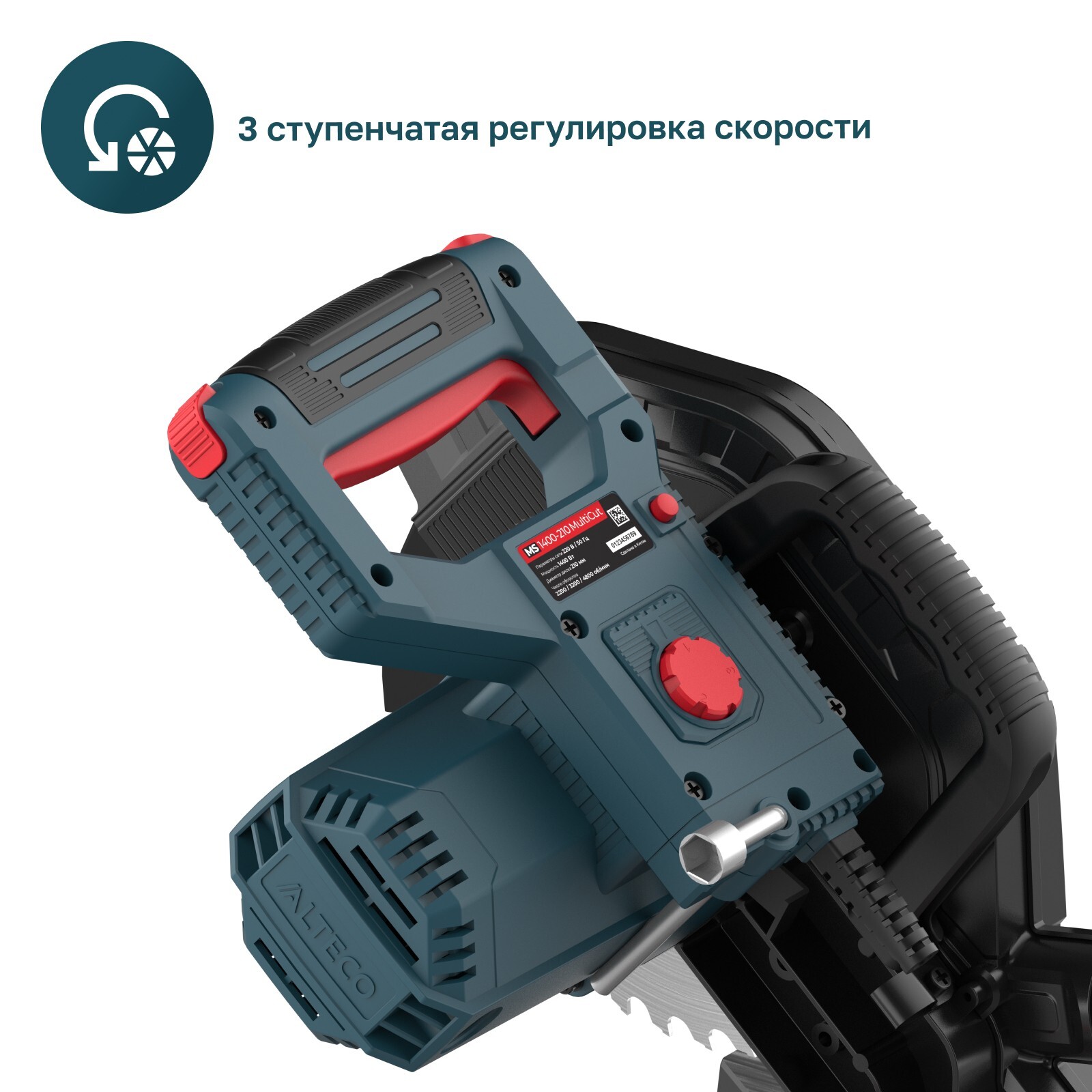 MS 1400-210 MultiCut оснащен мощным двигателем и трехступенчатой регулировкой скорости: 2200 об/мин для железа, 3200 об/мин для алюминия и 4200 об/мин для дерева и пластика. Оснащен лазерным указателем для точного реза и системой сбора пыли.