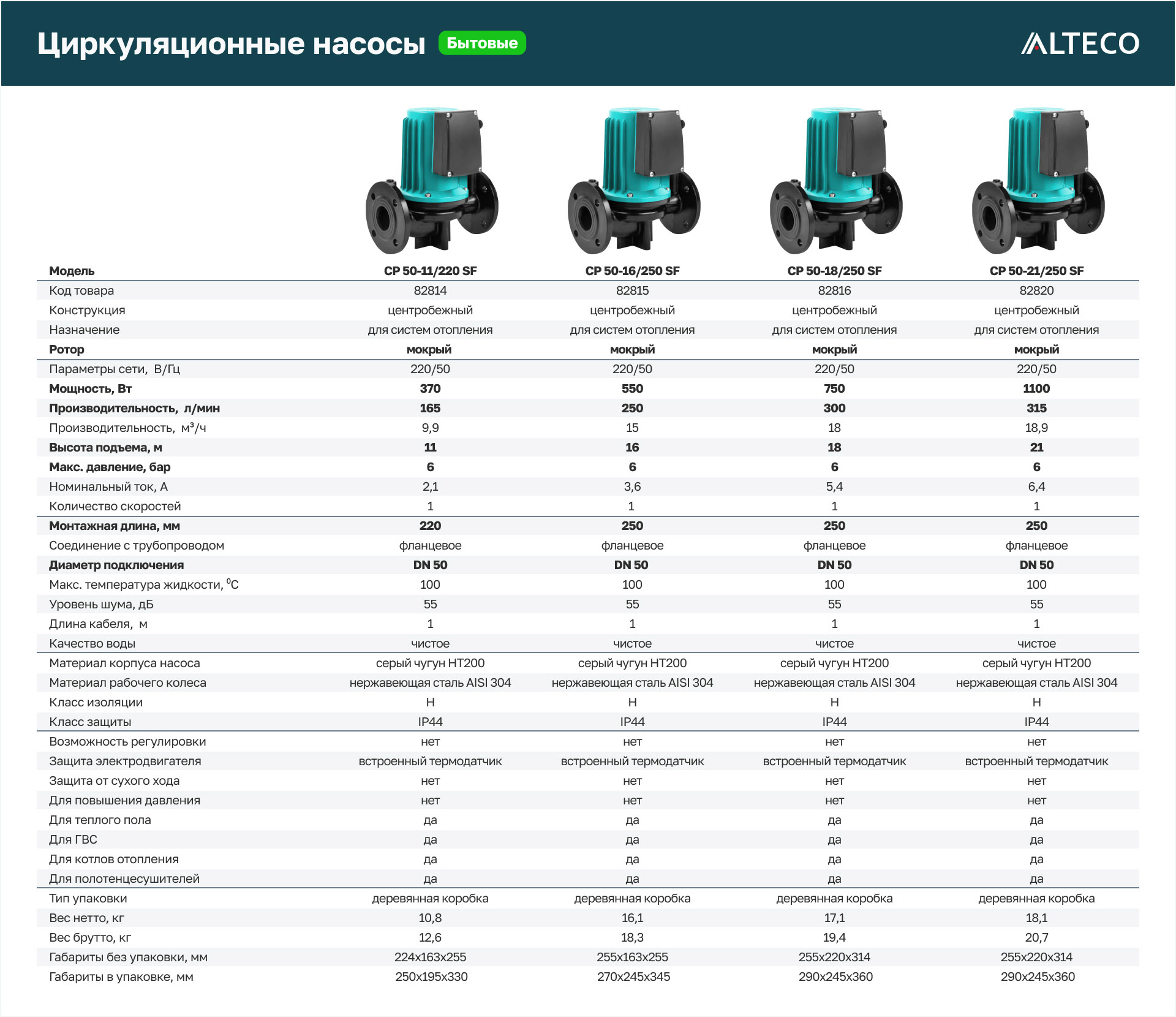 Преимущества ALTECO CP 50-21/250 SF
