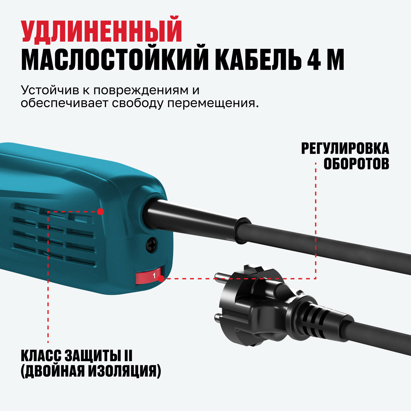 - Удлиненный маслостойкий кабель 4 м — устойчив к повреждениям и обеспечивает свободу перемещения.