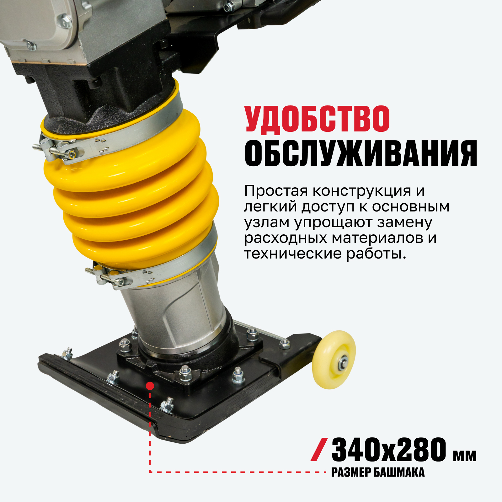 - Высокая производительность: 4-тактный двигатель с высокой мощностью гарантирует эффективное уплотнение различных материалов, включая сложные типы грунтов.